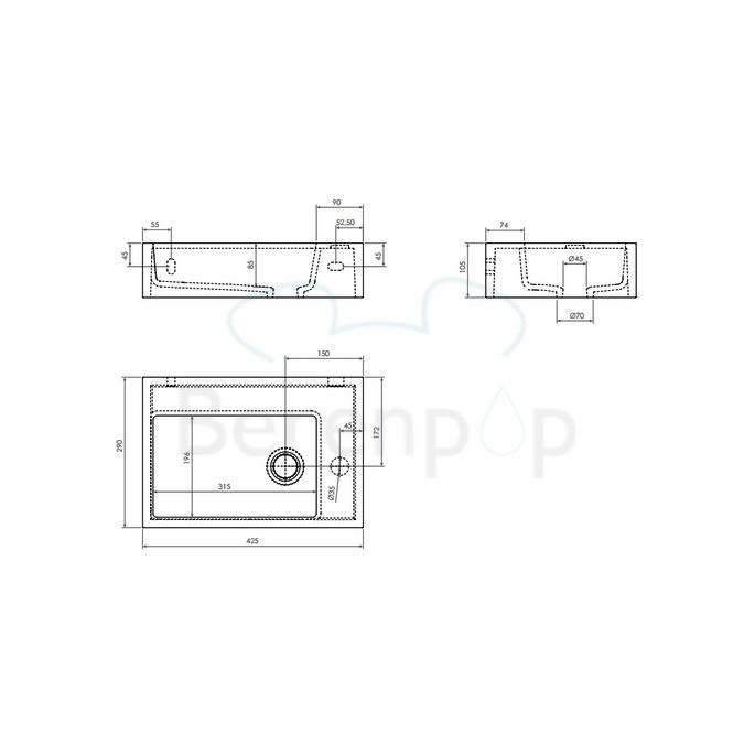 Mineral marble is a composite material that combines the beautiful high-gloss white look of ceramic with the technical superiority of composite materials. This material allows us to make products that have the traditional high-gloss white color, but also a very clean design with very sharp edges and corners. The smooth surface makes mineral marble very easy to clean and maintain.