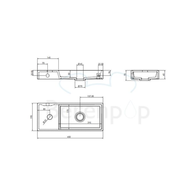 Clou Mini Wash Me CL0303134 keramiek fontein wit 45cm met kraangat zonder plug links Wandhangend en als opzetfontein te monteren.