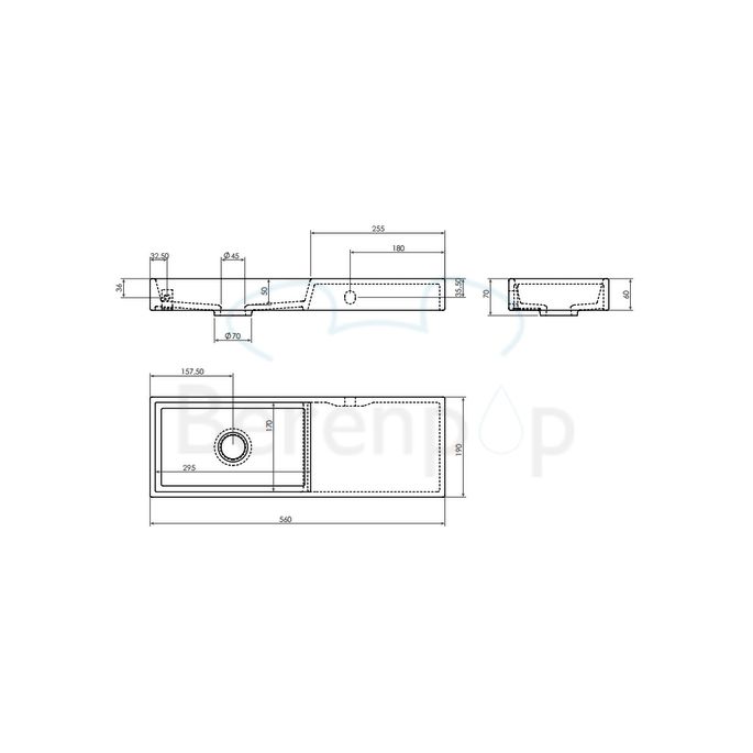 Clou Mini Wash Me CL0303141 keramiek fontein wit 56cm zonder kraangat zonder plug rechts Wandhangend en als opzetfontein te monteren.