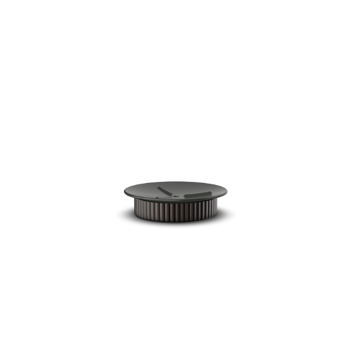 De twee onderdelen worden samengehouden met een siliconenring. Ze kunnen eenvoudig uit elkaar worden gehaald voor reiniging. Het aluminium onderdeel kan ook apart worden gebruikt als een klein dienblad, bijvoorbeeld voor sieraden.