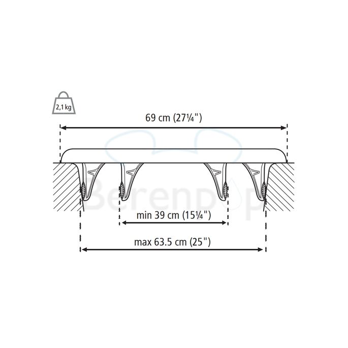 Aanpasbaarheid, hoek montageproppen: max. 63,6 cm / min. 39 cm