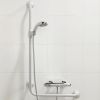 De wandbeugel 90° wordt aanbevolen voor gebruik bij douche of bad. Het horizontale deel van de beugel biedt steun tijdens het staan onder de douche en tijdens transfers. Het verticale deel vormt, in combinatie met een douchekophouder, een veilige glijstang die ook steun biedt. Door de lengte van het verticale gedeelte is de douchekophouder voldoende verstelbaar voor zowel de staande als zittende gebruiker.