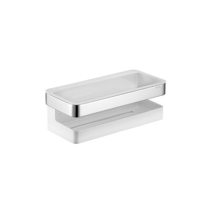 Douchekorf, 2-delig: metalen mandje en uitneembaar, zeepbestendig, breukvast en UV-resistent, kunststof inzetstuk, verchroomd/wit