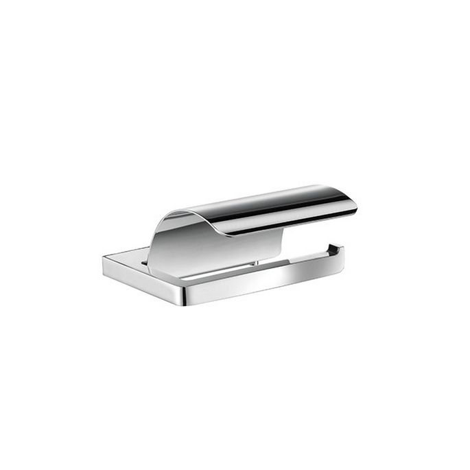 Toilet paper holder with lid, for 100 mm wide paper rolls, chrome-plated
